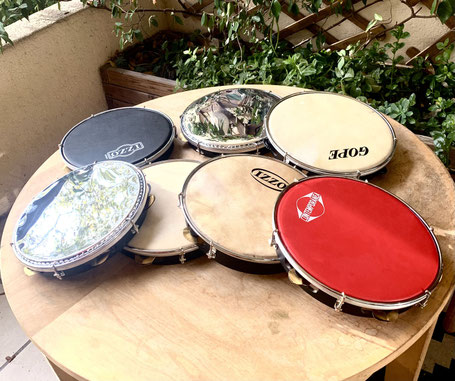 Pandeiro au timbre précis, peau naturelle et jingles en laiton.